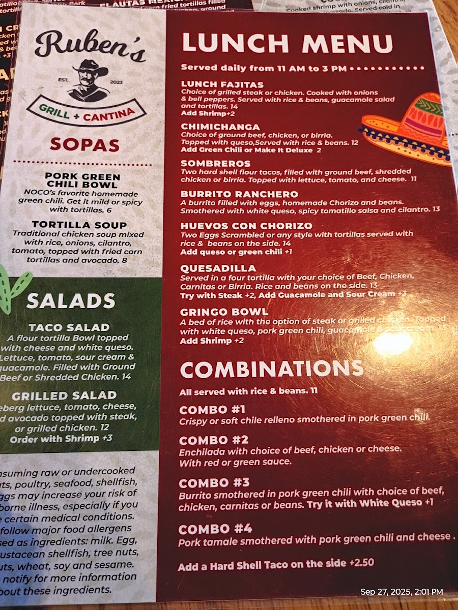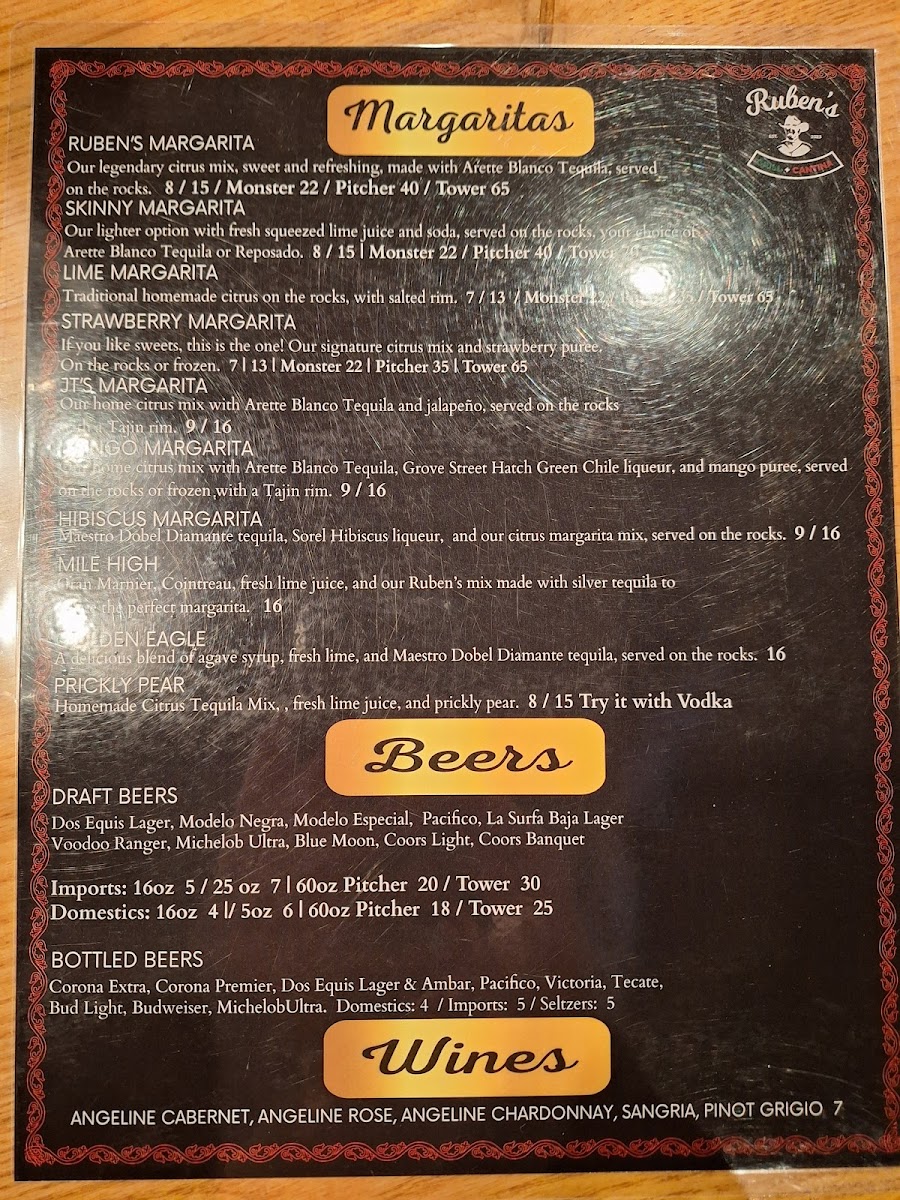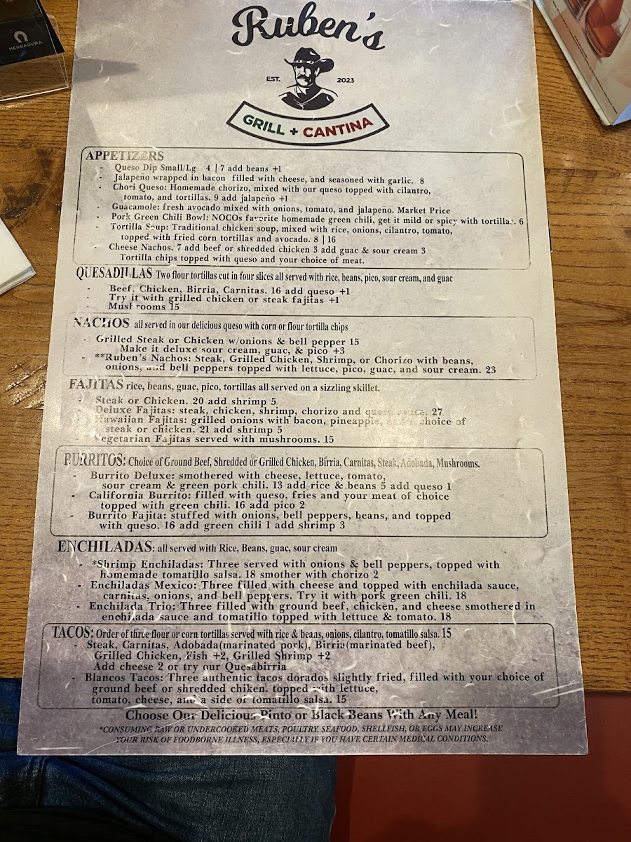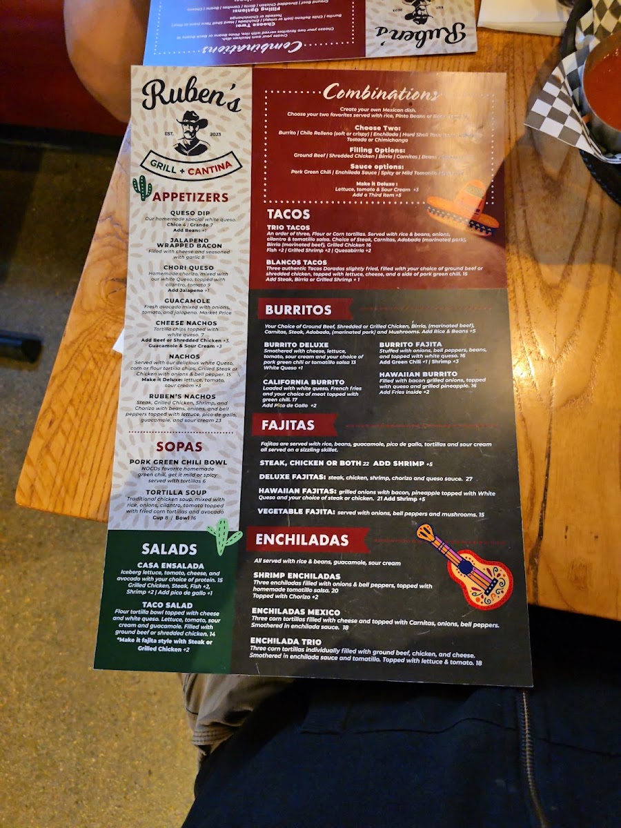 The menu at Ruben's Grill + Cantina offers a thoughtfully curated selection of Mexican dishes that strike a balance between familiar favorites and a few unique twists. Designed for casual dining with a lively yet comfortable atmosphere, the menu invites you to enjoy everything from hearty combination plates to simple, shareable appetizers.